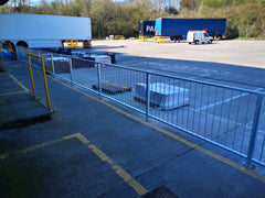 This Pedestrian guard rail was fitted with safety in mine. Installed on a commercial yard it protects passersby and staff from moving trucks and vehicles.